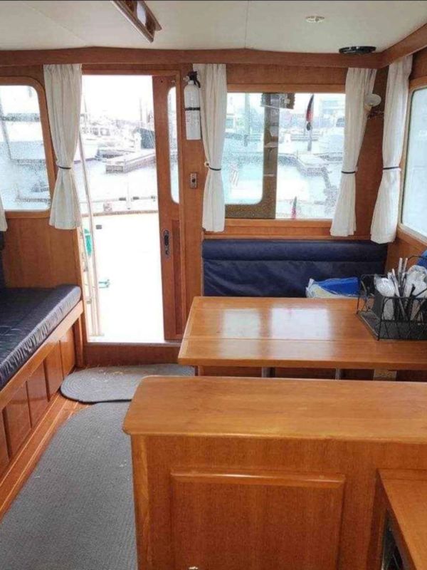 The wood-trimmed Interior of the Borealis is sure to keep the members of your group and yourself feeling At Home the whole time we are away from the dock. From the comfortable seating at the Galley table or the Starboard Bench to the beds they both fold down into, nobodies backs while be sore after a trip.